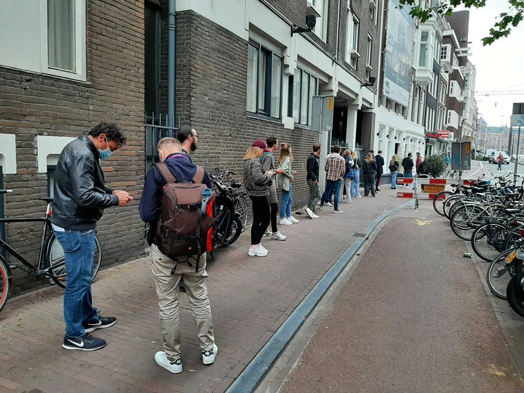 Op dit moment geven zij aan na één uur je test resultaat te delen. Voor elk doel is er een ander loket. Als mensen vooraf negatief testen op het coronavirus kunnen zij een kaartje voor een concert of wedstrijd kopen. Een rij voor een testlocatie aan de rozengracht. Een aantal testlocaties draaide vandaag op volle bezetting, zegt testen voor toegang.